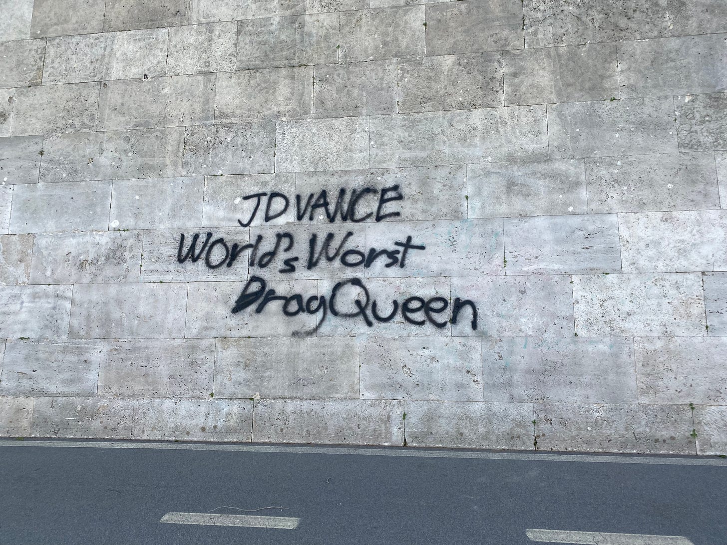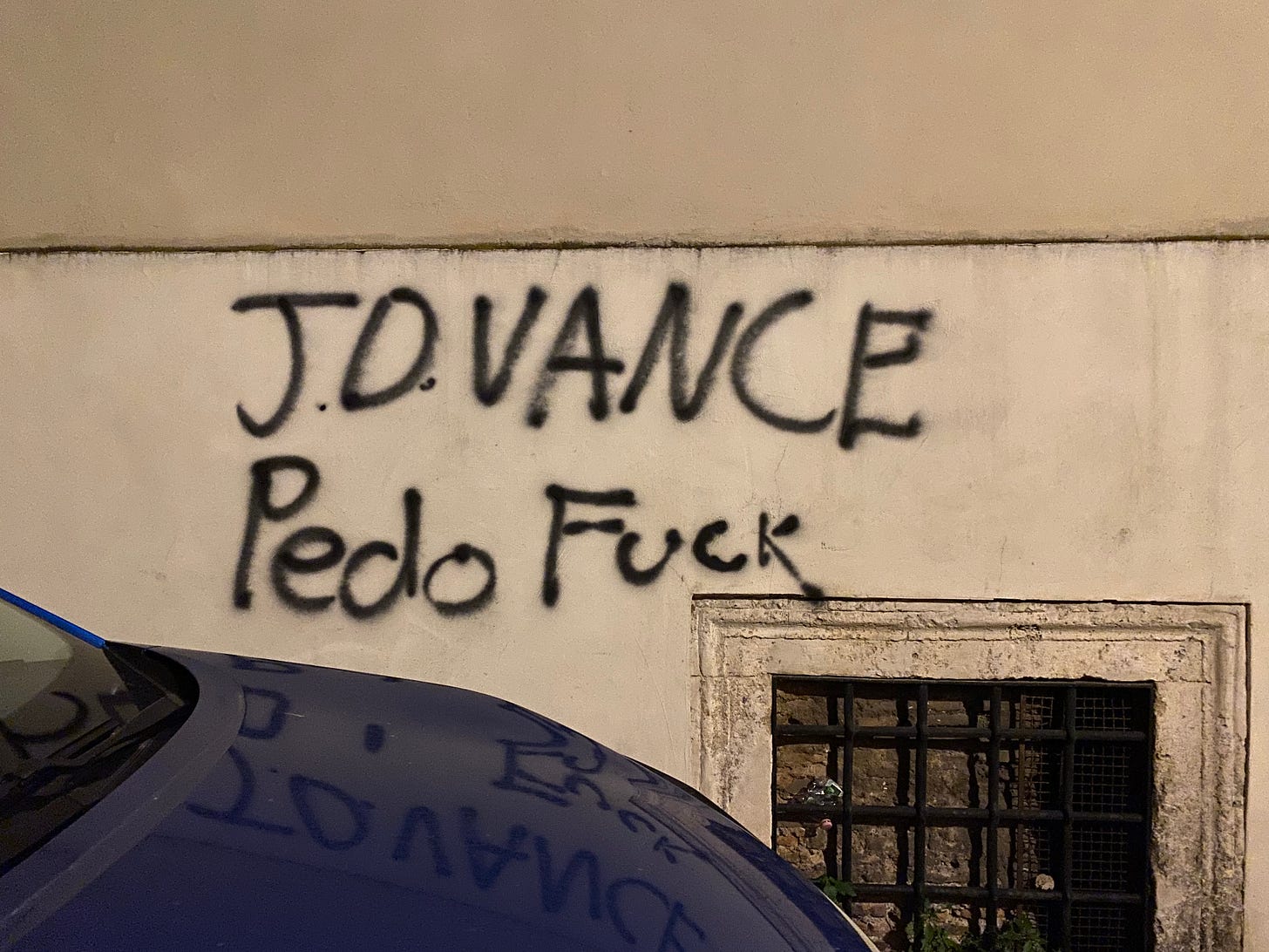J.D. Vance was in Rome on Easter to kill the Pope. Here is some graffiti about it.